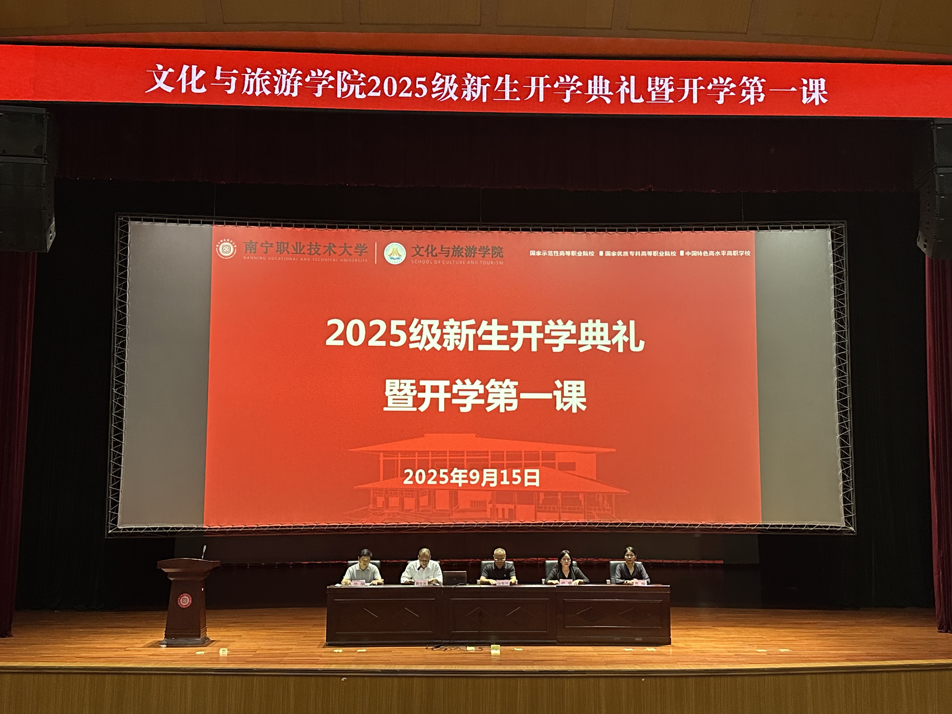 金秋九月,丹桂飘香。9月15日,文化与旅游学院在学校会议中心一号厅分阶段举行2025级新生开学典礼暨开学第一课,学院领导、2025级专兼职辅导员及全体新生参会,共同开启新生大学新篇章。活动现场(周韵/摄)活动分为两个阶段进行,第一阶段为开学典礼。典礼在雄壮国歌声中启幕。主持人介绍学院领导后,现场播放了迎新现场视频,画面里志愿者的忙碌身影与新生的打卡笑脸尽显校园温暖。随后,学院党委书记陆军伟、院长卢睿分别致...